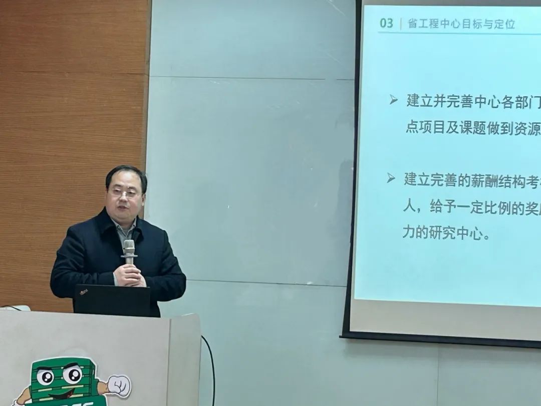 會上,研究中心主任周總就江蘇省綠色智能包裝工程技術(shù)研究中心的基本情況及后續(xù)的目標(biāo)與定位、團(tuán)隊建設(shè)及人才培養(yǎng)、主要研究方向及任務(wù)考核做了詳細(xì)的介紹。