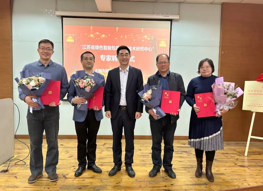 隨后徐穎總經(jīng)理與行業(yè)專家及教授們共同為“江蘇省綠色智能包裝工程技術(shù)研究中心”揭牌,并為專家教授團(tuán)隊及研究中心主要負(fù)責(zé)人授聘書。