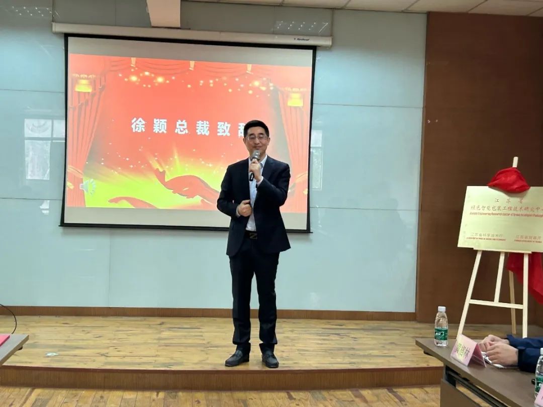 揭牌儀式上徐穎總經(jīng)理致辭,他表示,綠色化發(fā)展,塑造包裝行業(yè)智能化生態(tài)圈已成為市場發(fā)展趨勢,這是綠色智能包裝工程技術(shù)研究中心建設(shè)的初衷,也是我們企業(yè)使命索然,為客戶節(jié)約成本,并實(shí)現(xiàn)綠色低碳循環(huán),助推現(xiàn)代物流高效發(fā)展,為公司高質(zhì)量發(fā)展打好基礎(chǔ)。徐總同時也對技術(shù)團(tuán)隊寄予更高期望,希望研究中心要做好人才儲備、技術(shù)平臺建設(shè),加強(qiáng)與高校研發(fā)機(jī)構(gòu)聯(lián)動。最后相信在行業(yè)專家教授們的加持下,在公司各部門的配合下,研究中心在工業(yè)包裝綠色智能發(fā)展道路上取得新的技術(shù)突破,能夠反哺客戶。